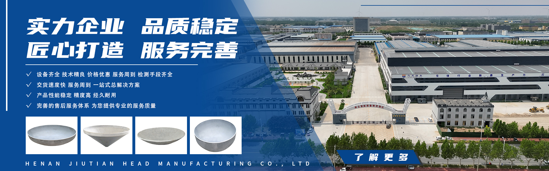 河南九天封頭制造有限公司是一家集研發、生產、銷售、服務于一體的國有控股公司,注冊資金為1億元。公司座落于河南省商丘市虞城縣高新技術開發區,南北相臨京九鐵路、濟廣高速,東西有連霍高速、隴海鐵路穿境而過,位置優越交通極為便利。 公司主要設備有600T—36000T的雙動壓機各1臺,3.5米—14.5米的旋壓機組各1套,6000W—30000W激光下料機6臺,6米、8米的等離子焊機及1米、1.6米、2.6米、5米的立車各1臺。龍門式20000W三維激光切割機...